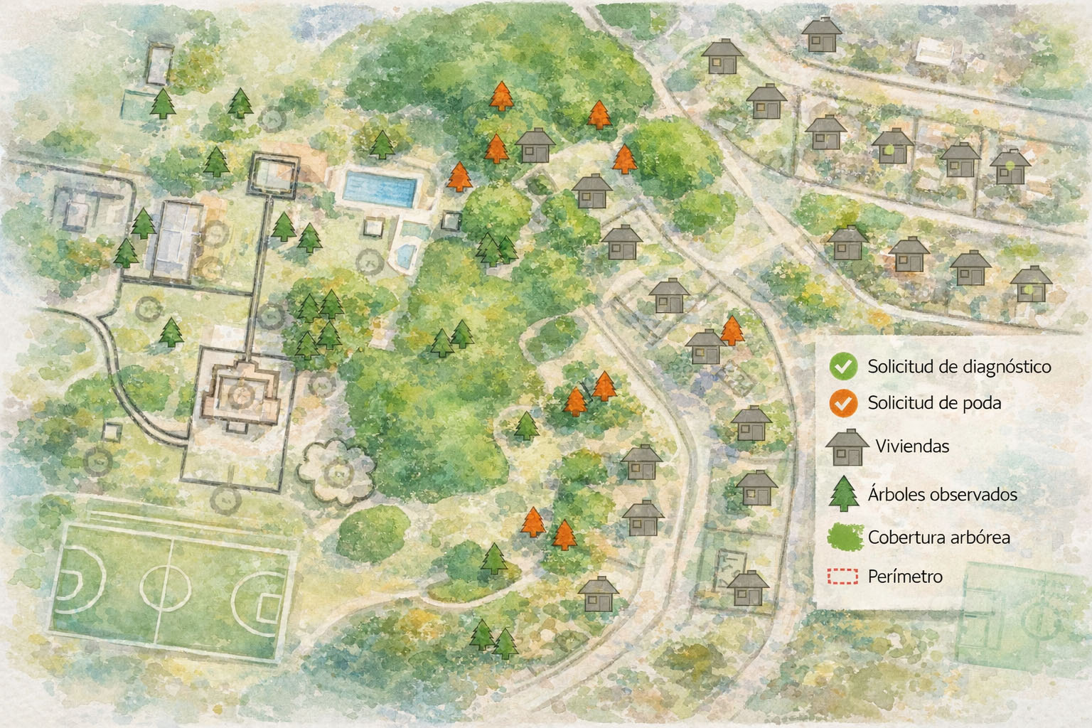 El trabajo incluyó análisis técnico y legal, identificación de oportunidades de mejora y elaboración de recomendaciones orientadas a fortalecer la gestión del arbolado público, incorporando la perspectiva comunitaria y los servicios ecosistémicos como base para la toma de decisiones.
