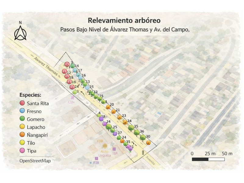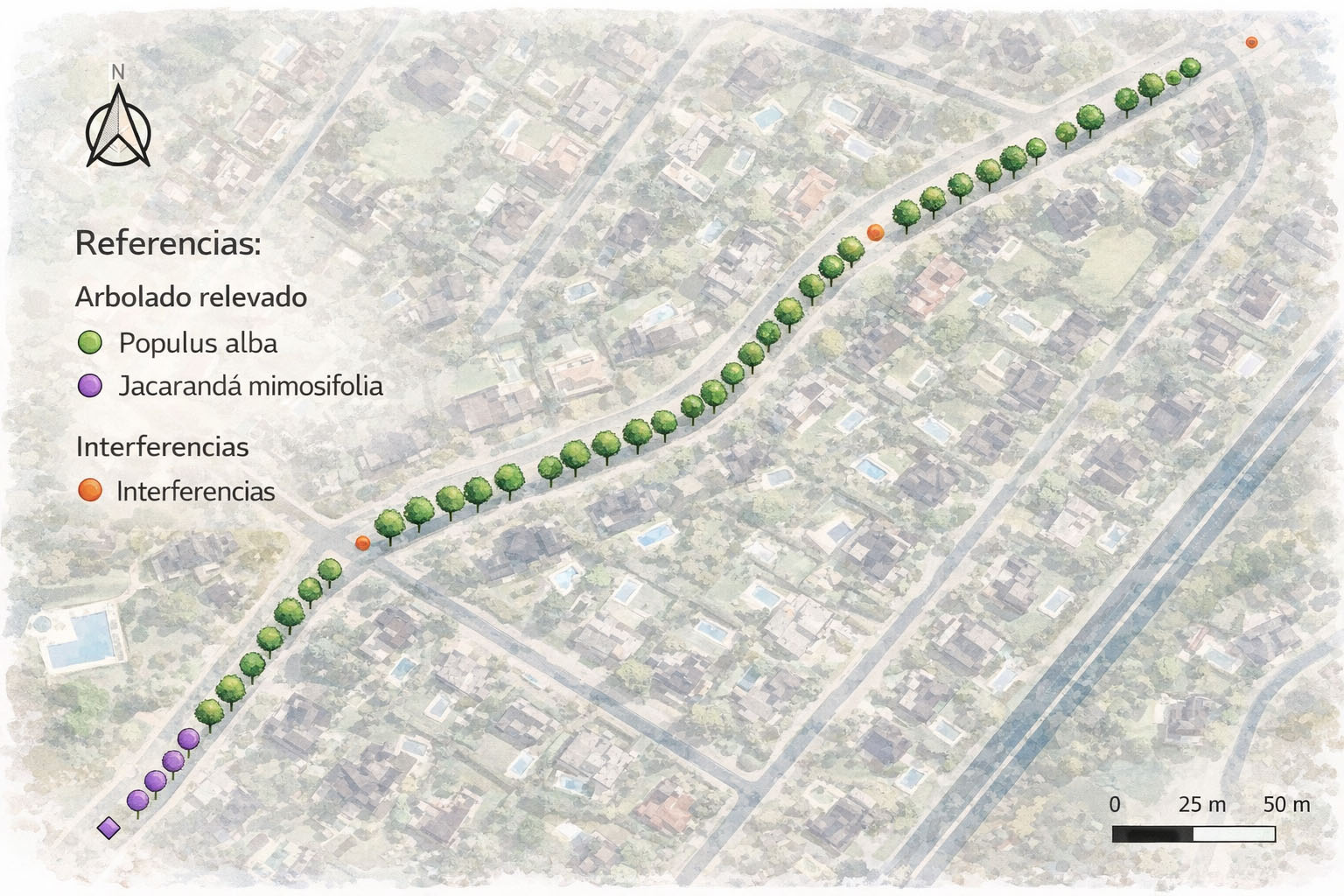 Los resultados se presentaron en informes técnicos y cartografía SIG, orientados a minimizar impactos y preservar el arbolado existente durante la ejecución de la obra.