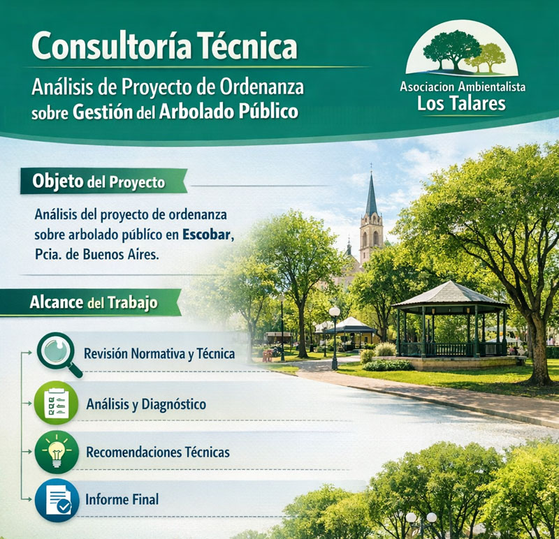 Acompañamos a municipios y organizaciones sociales en la gestión del arbolado y los espacios verdes, brindando asesoramiento técnico para la revisión y actualización de marcos normativos y ordenanzas.